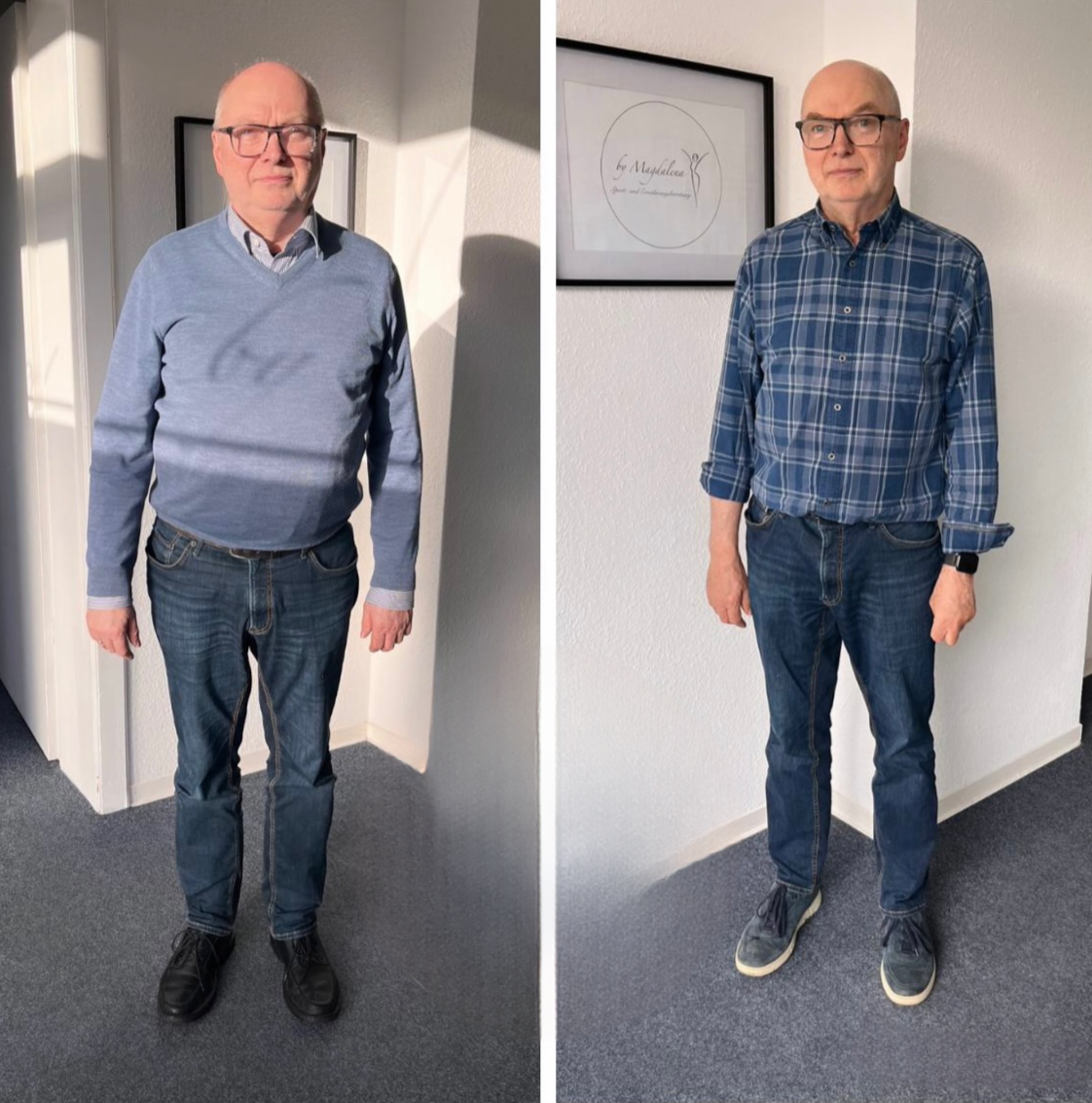 Der Mann hat sein Körpergewicht um 10 kg reduziert, davon 3 kg an gefährlichem viszeralem Fett.