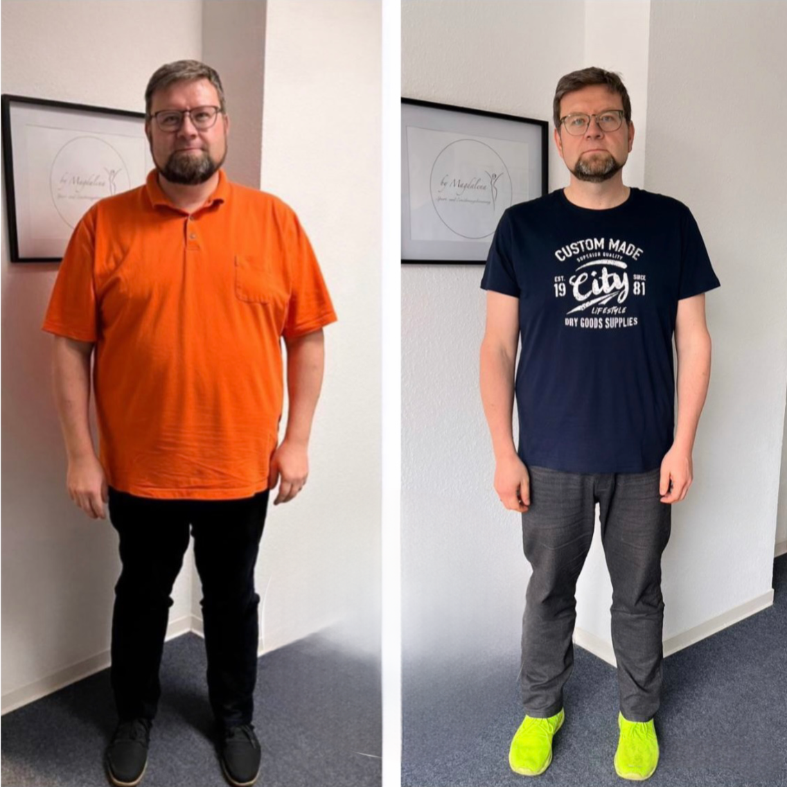 Durch das Konzept von Magdalena, Ihre tolle Unterstützung und der konsequenten Hilfe meiner lieben Frau (die beste Köchin der Welt) beim umsetzten des Ernährungsplans habe ich in 3 Monaten 8 kg Körperfett abgebaut und das viszerale Bauchfett auf ein gesundes Maß reduziert.